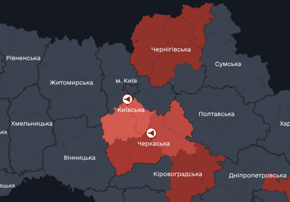 О 01:56 БпЛА зафіксовані в таких містах Київщини: