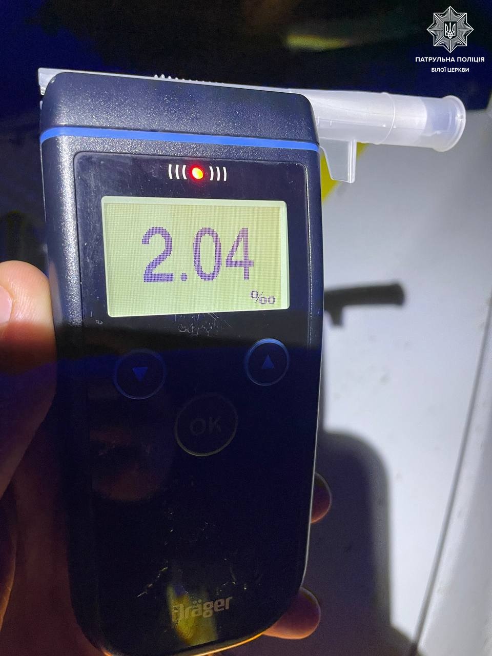 Через деякий час на місце події повернувся винуватець автопригоди. Під час спілкування з останнім патрульні виявили ознаки алкогольного сп’яніння. Результат огляду: 2,04 проміле алкоголю.