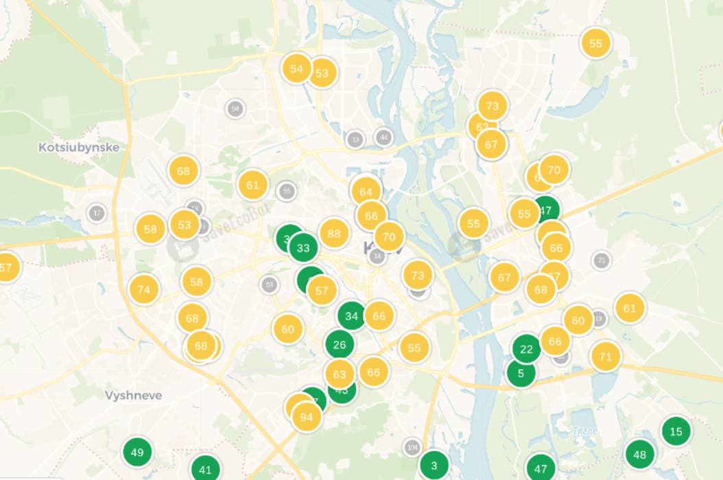 Удень, 15 листопада, по всьому місту середній рівень забруднення повітря. Про це повідомляє сервіс моніторингу saveecobot.com