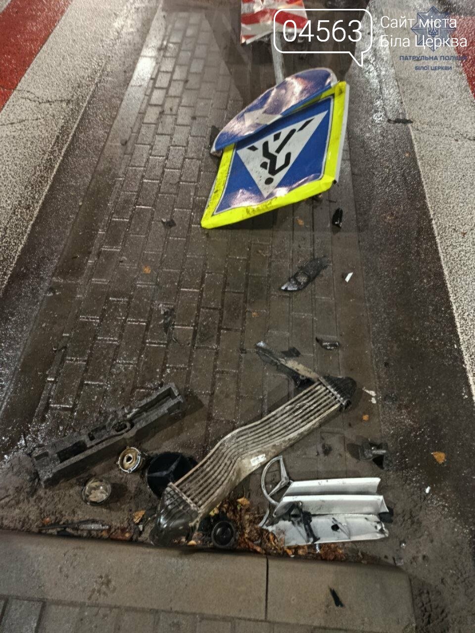 Учора ввечері на вулиці Ярослава Мудрого патрульні виявили пошкоджений дорожній знак, поруч із яким лежав номерний знак автомобіля.