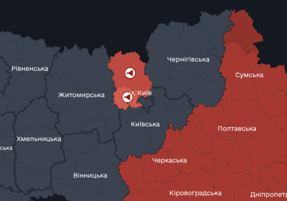 Станом на 11:00 шахеди продовжують атакувати Київ та область. За даними повітряного моніторингу, вони перебувають в північній частині Київщини: